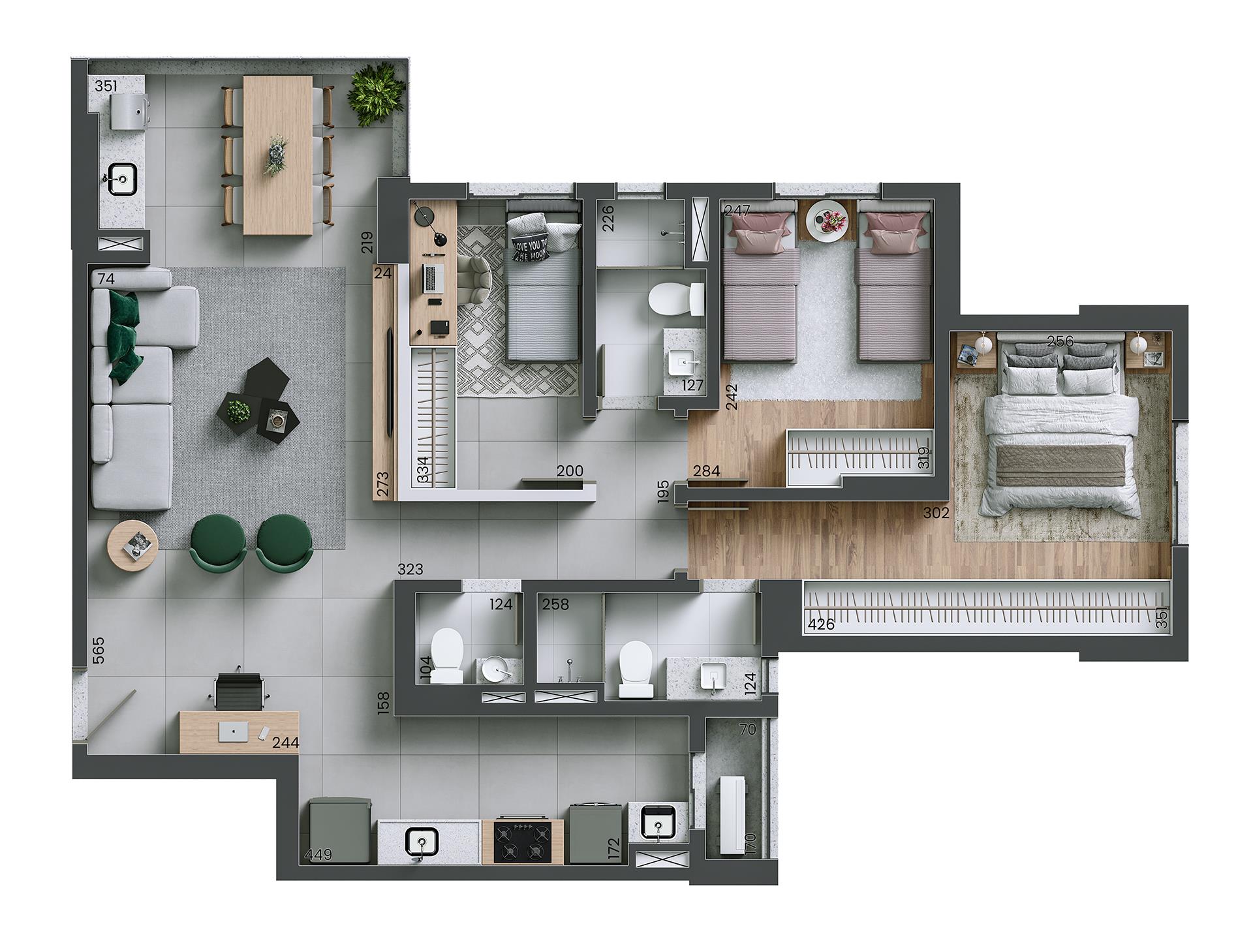 As imagens aqui constantes são ilustrativas. As perspectivas dos ambientes apresentam sugestões de decoração, não fazendo parte do projeto em execução ou que será executado. Os acabamentos serão conforme memorial descritivo. Registro de Incorporação no Cartório de Registro de Imóveis competente. Para mais informações entrar em contato com a construtora.